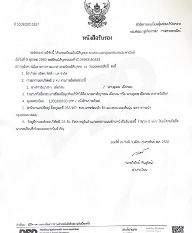 *ใช้เพื่อเป็นหลักฐานยืนยันการจดทะเบียนอย่างถูกต้องบนเว็บไซต์